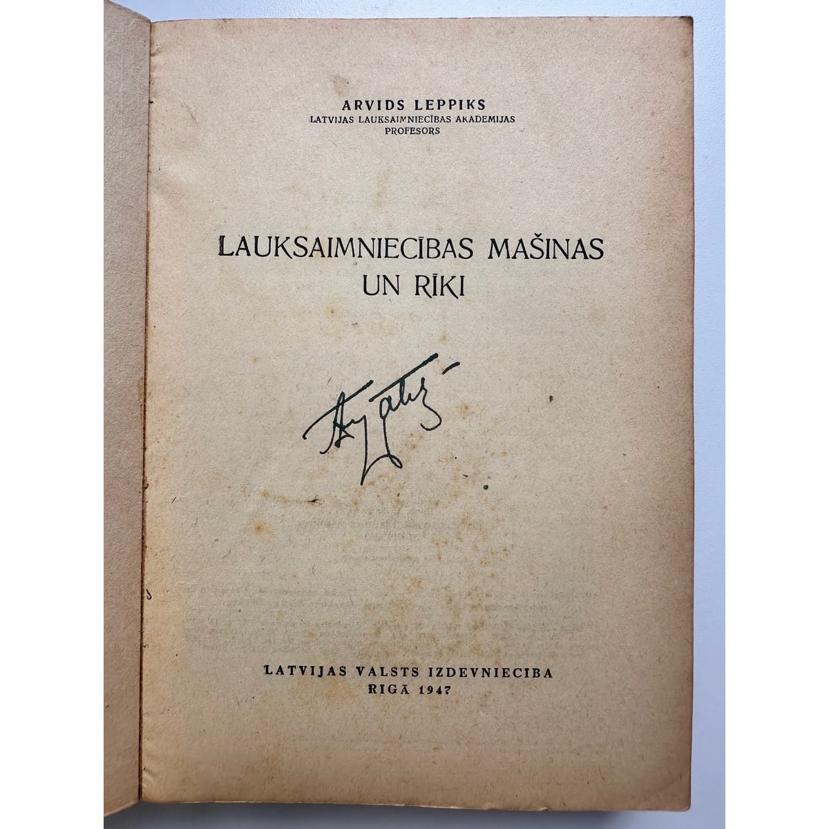 Lepiks, Arvīds, Lauksaimniecības mašinas un rīki / Arvids Leppiks. Rīga : Latvijas Valsts izdevniecība, 1947. 524, [1] lpp. : il., tab. ; 21 cm.