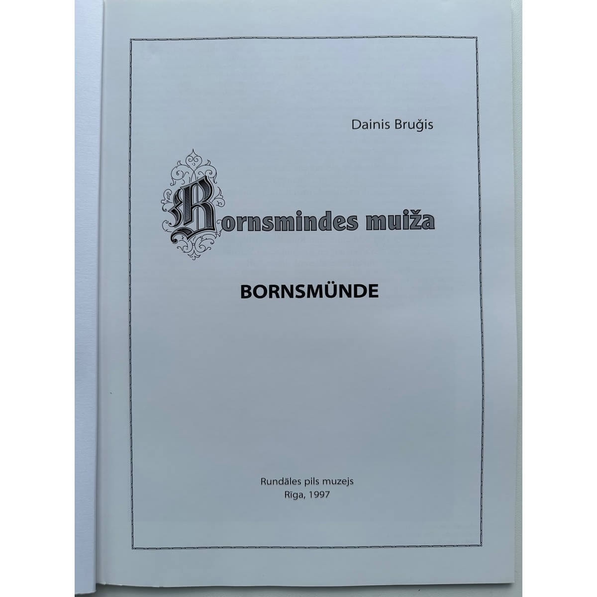 Bruģis, Dainis, Bornsmindes muiža = Bornsmünde. Rīga : Rundāles pils muzejs, 1997. 50, [1] lpp. : ilustrācijas ; 30 cm. Bauskas rajona muižas ; 2. laid. . Izdevuma digitāla versija pieejama LNB Digitālajā bibliotēkā. ISBN 9984909824 (brošēts).