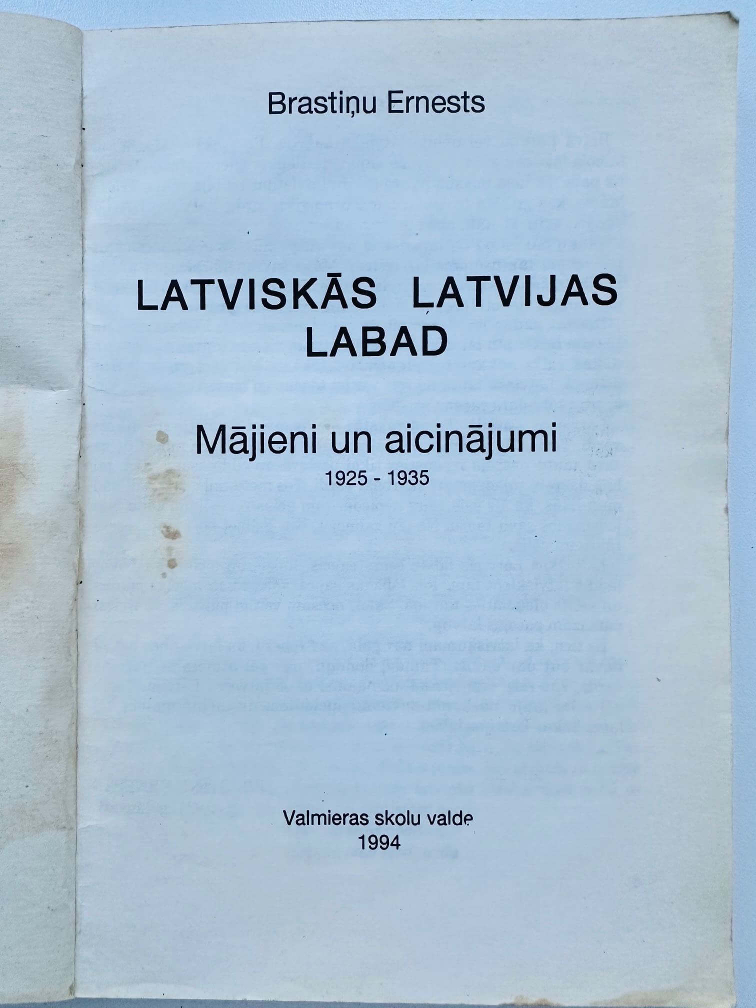 Brastiņš, Ernests, Latviskās Latvijas labad : mājieni un aicinājumi, 1925-1935 / Brastiņu Ernests. [Valmiera] : Valmieras skolu valde, 1994. 163 lpp.