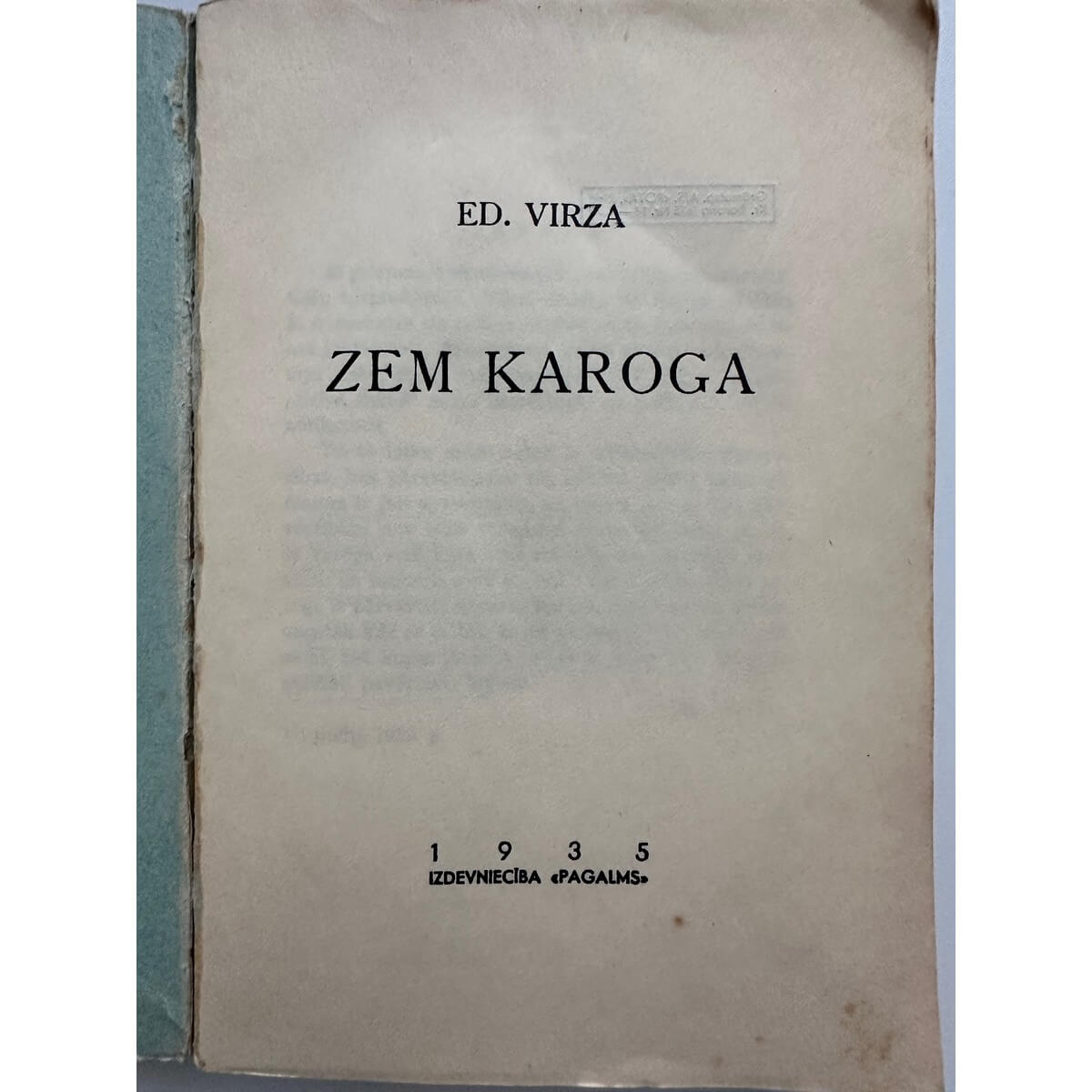 Virza, Edvarts, Zem karoga / Ed. Virza. Rīga : Pagalms, 1935 511, [1] lpp. ; 20 cm.