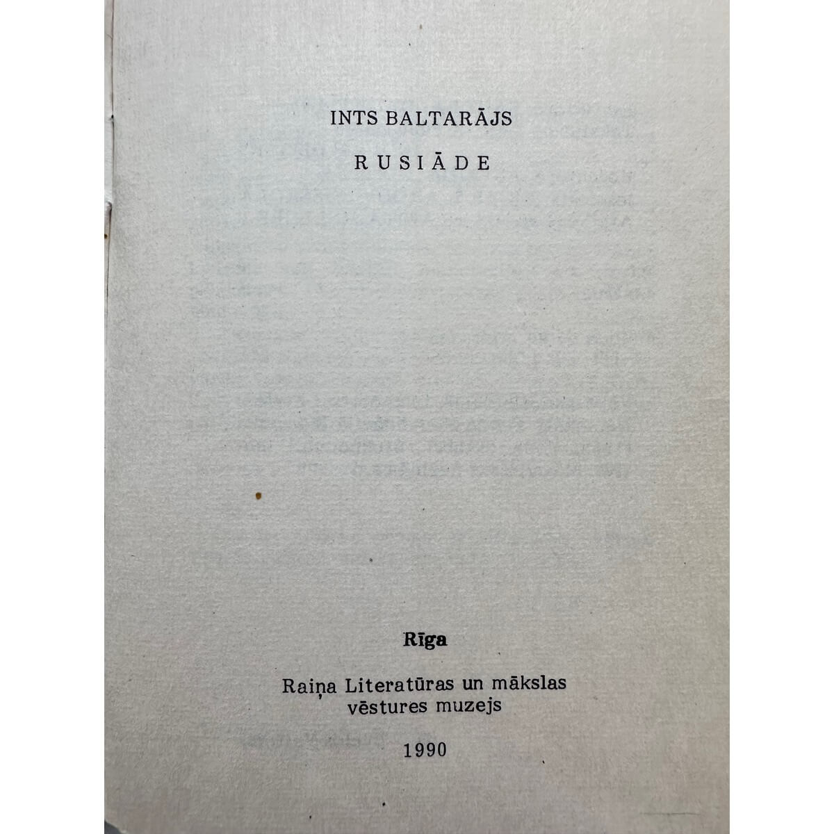 Valters, Ēvalds, Rusiāde : [dzejoļi] / Ints Baltarājs ; [priekšvārda autors Andrejs Eglītis]. Rīga : Raiņa Literatūras un mākslas vēstures muzejs, 1990. 67 lpp. ; 14 cm. Ticība. Cerība. Mīlestība .