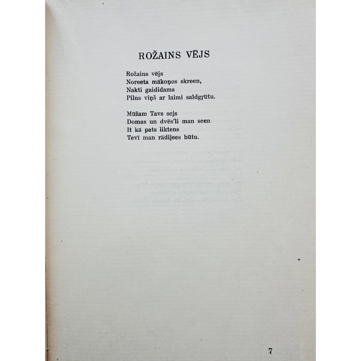 Akuraters, Jānis, Rožains vējs : dzejas (1920-1922) / J. Akuraters. Rīga : J. Rozes apgadiba, 1922. 78 lpp. ; 19 cm.