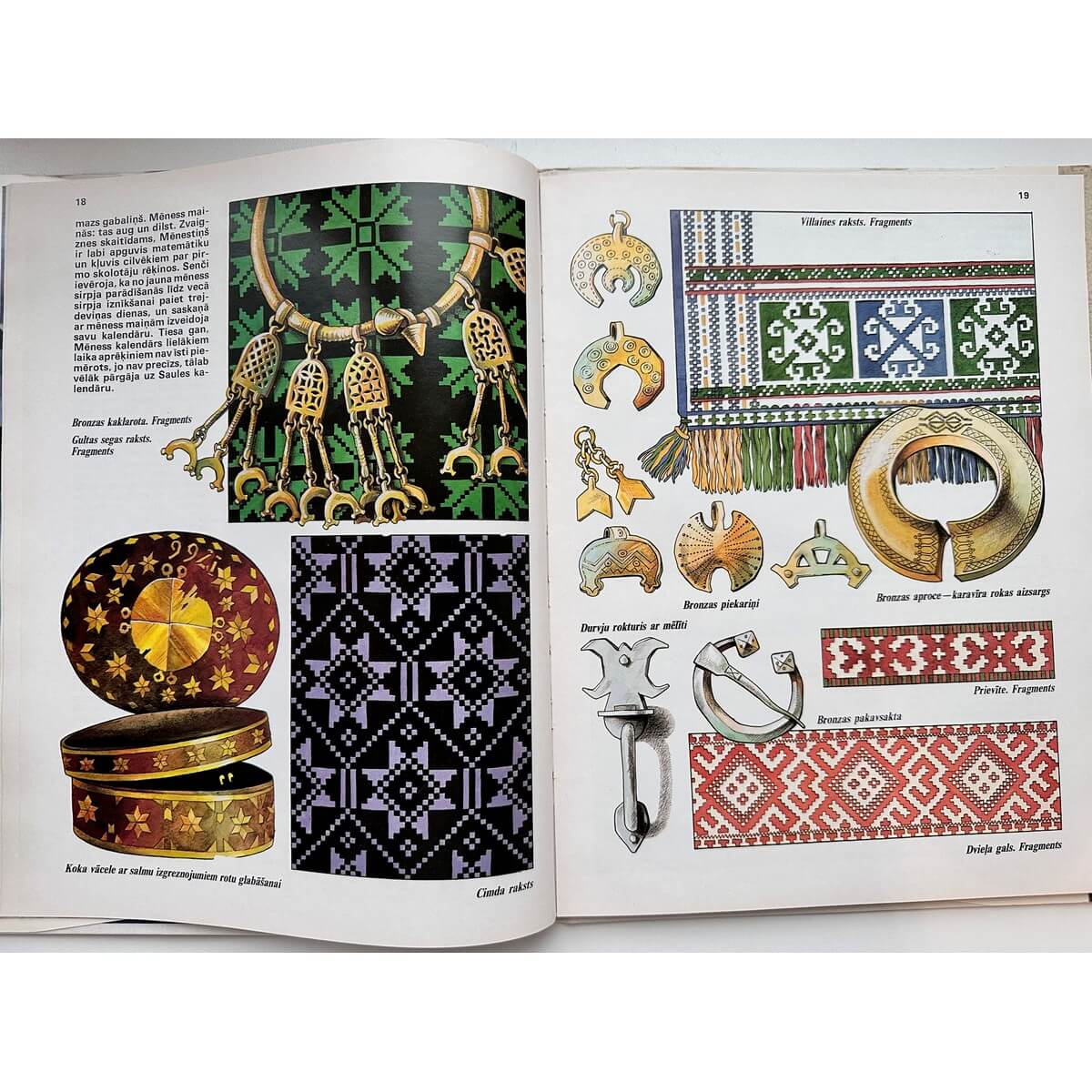 Grāmata sniedz bērnam ieskatu latviešu mitoloģijas tēlu pasaulē, iepazīstina ar labajiem un ļaunajiem spēkiem un raksturīgākajām ornamenta zīmēm. Autores stāstījumu papildina folkloras teksti. Krājuma ilustrēšanai izmantoti Latvju rakstu materiāli un pazīstamu latviešu mākslinieku darbi.