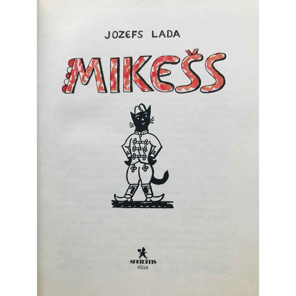 Lada, Josef, Mikešs : [jaunākā skolas vecuma bērniem] / Jozefs Lada ; [autora ilustrācijas ; no čehu valodas tulkojusi Anna Bauga un Vinifreds Kraučis]. Rīga : Sprīdītis, [1993]. 381, [3] lpp. : il. ISBN 579600137X