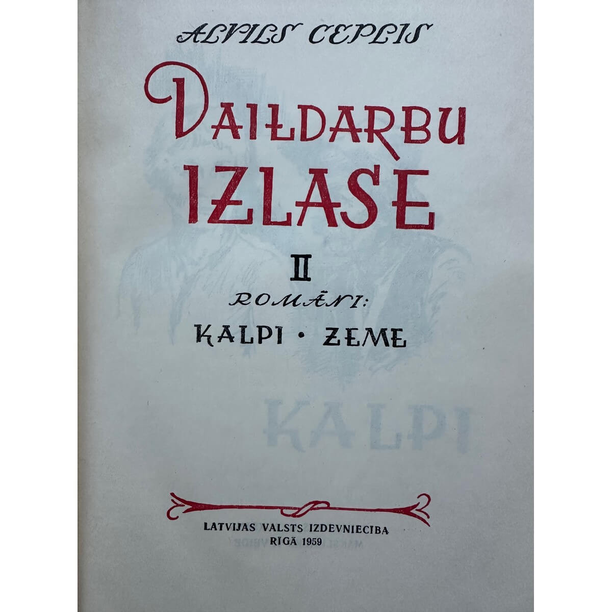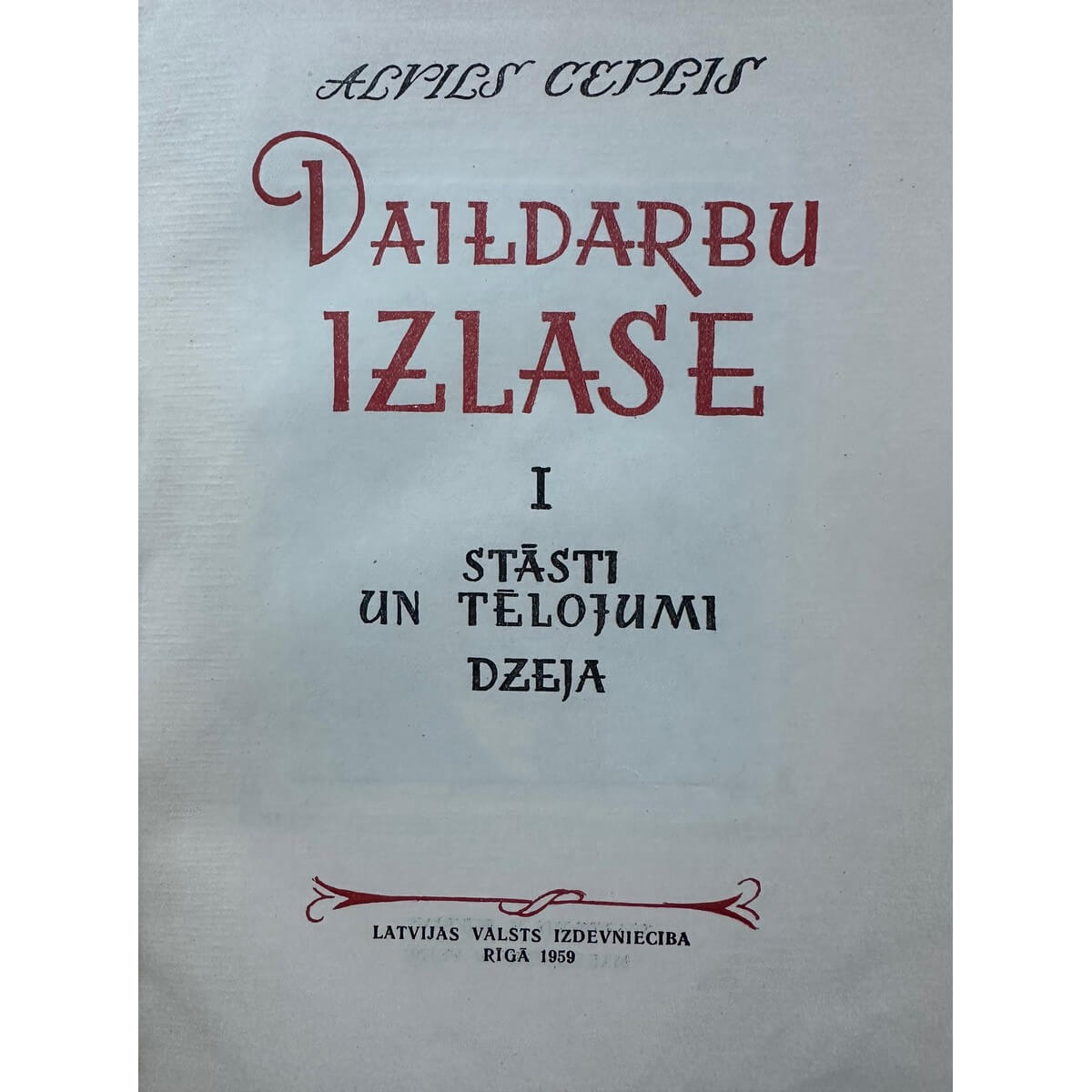 Ceplis, Alvils, Daiļdarbu izlase / Alvils Ceplis ; [sakārtojis un pēcvārdu sarakstījis H. Rukšāns ; māksl. V. Veide]. Rīga : Latvijas Valsts izdevniecība, 1959. 2 sēj. : il. ; 21 cm.