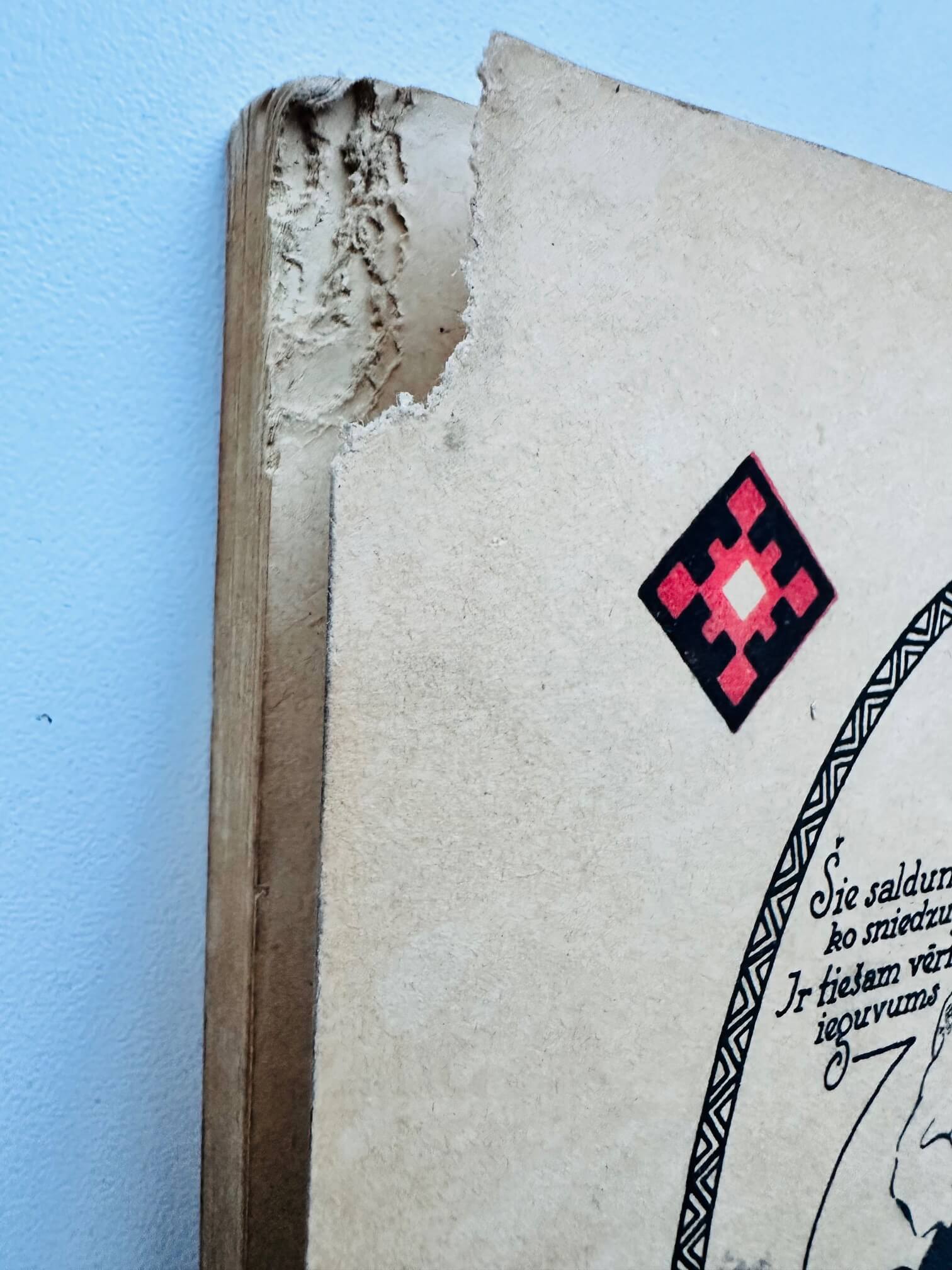 Grāmata labi saglabājusies, bet aizmugures vākam ir robs, papīra zudums augšējā kreisā stūrī. Tas ir skāris arī dažas pēdējās lappuses.