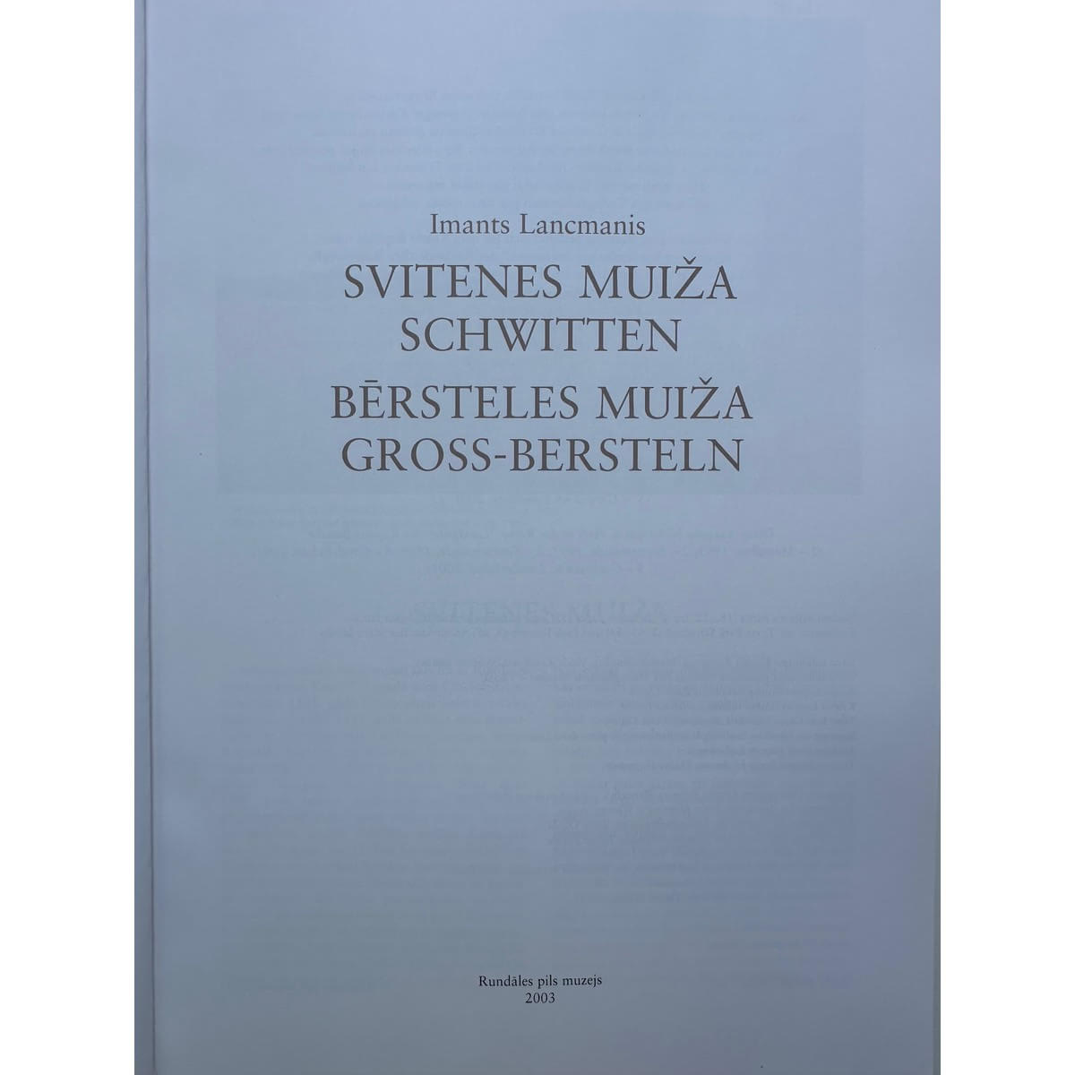 Lancmanis, Imants, Svitenes muiža = Schwitten ; Bērsteles muiža = Gross-Bersteln / Imants Lancmanis [arī foto] ; [dažu nodaļu autore Ilze Māra Janelis ; vācu tulkojums: Urzula Reimersa, Valda Kvaskova ; foto: Ints Lūsis, Velta Leijere]. Rundāle : Rundāles pils muzejs, 2003 85 lpp. : il., kartes ; 30 cm. ISBN 9984968801 (brošēts).